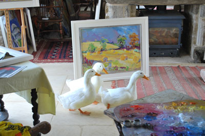 My rural home in Oxfordshire, the product of eighteen years of creative building and landscaping, is both artistically inspirational and fun. My greatest pleasure and excitement is painting outside, directly mark making from nature. Three wonderful lakes, extensive woodland, lily ponds, and outdoor sculptures provide me with endless subjects for plein air painting, as well as a perfect tranquil retreat.